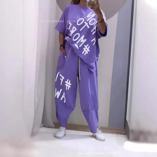 Urbanease™ Letter Print Two-Piece Lounge Set – Where Casual Comfort Meets Street-Chic Vibes